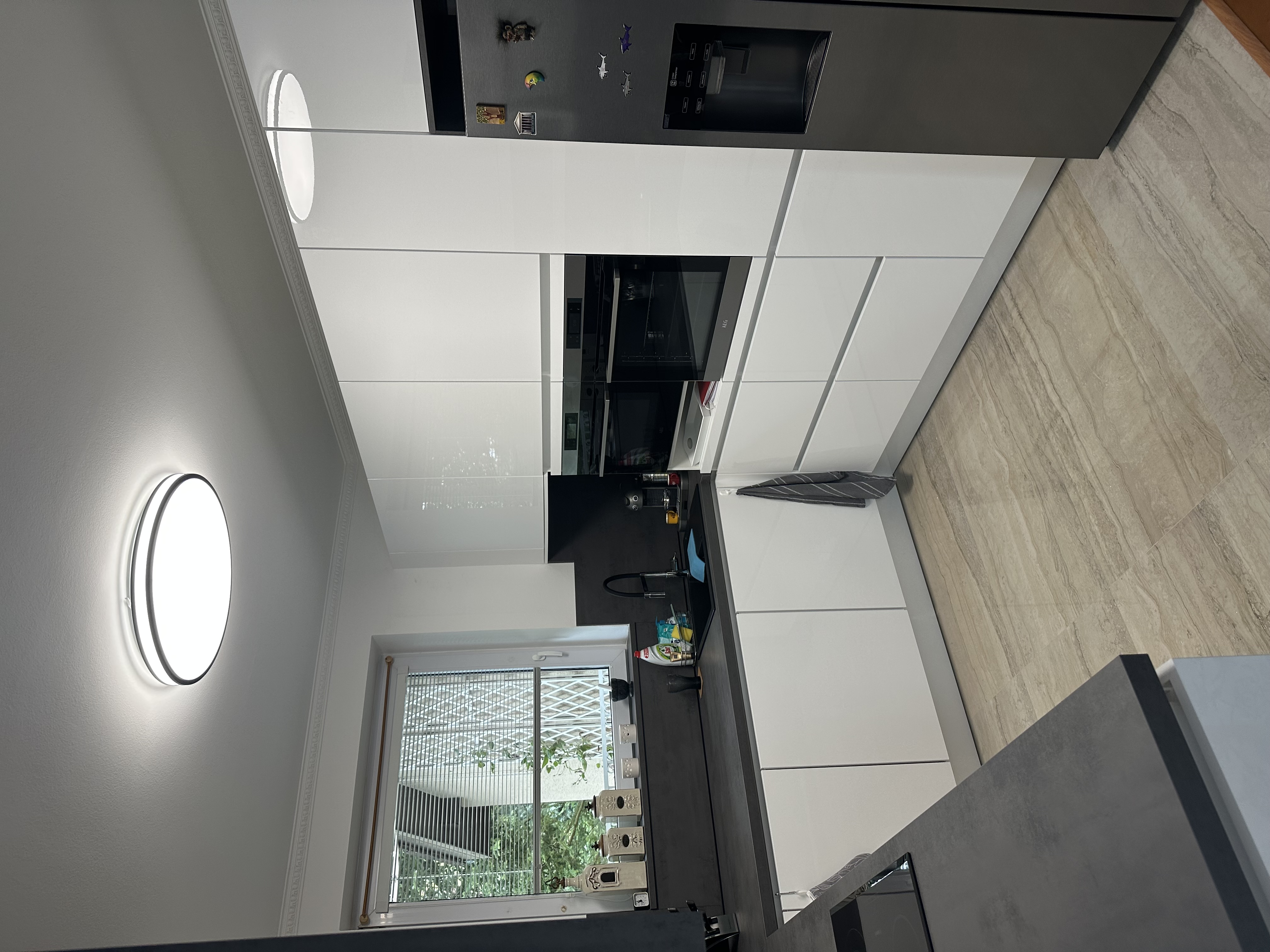 V tomto případě jsme se rozhodli pro vestavěnou variantu, kdy je lednice umístěna mezi kuchyňské skřínky. Díky tomuto řešení lednice perfektně zapadá do celkového designu kuchyně.