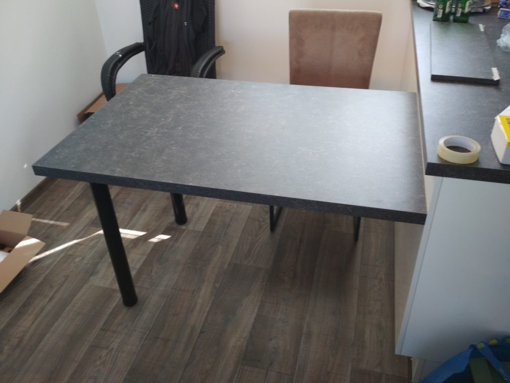 Bílá kuchyně s betonovou deskou