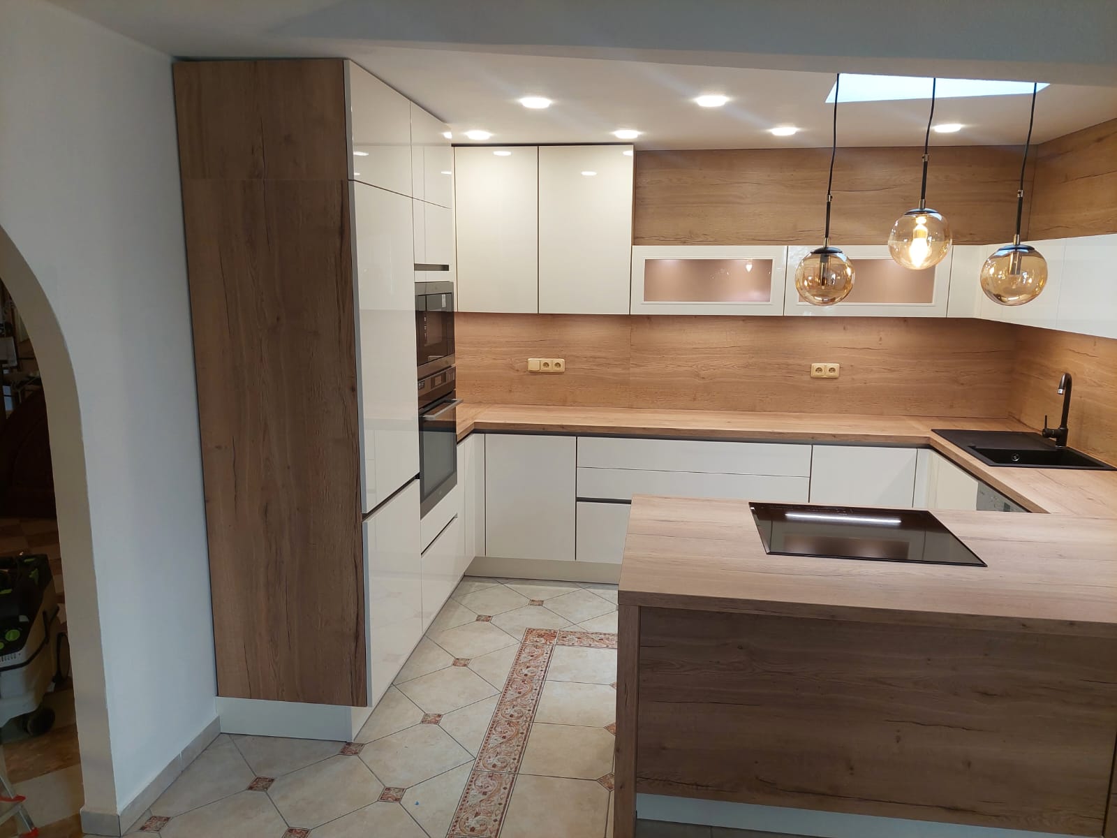 Elegantní kuchyně s kontrastem bílé a dřeva
