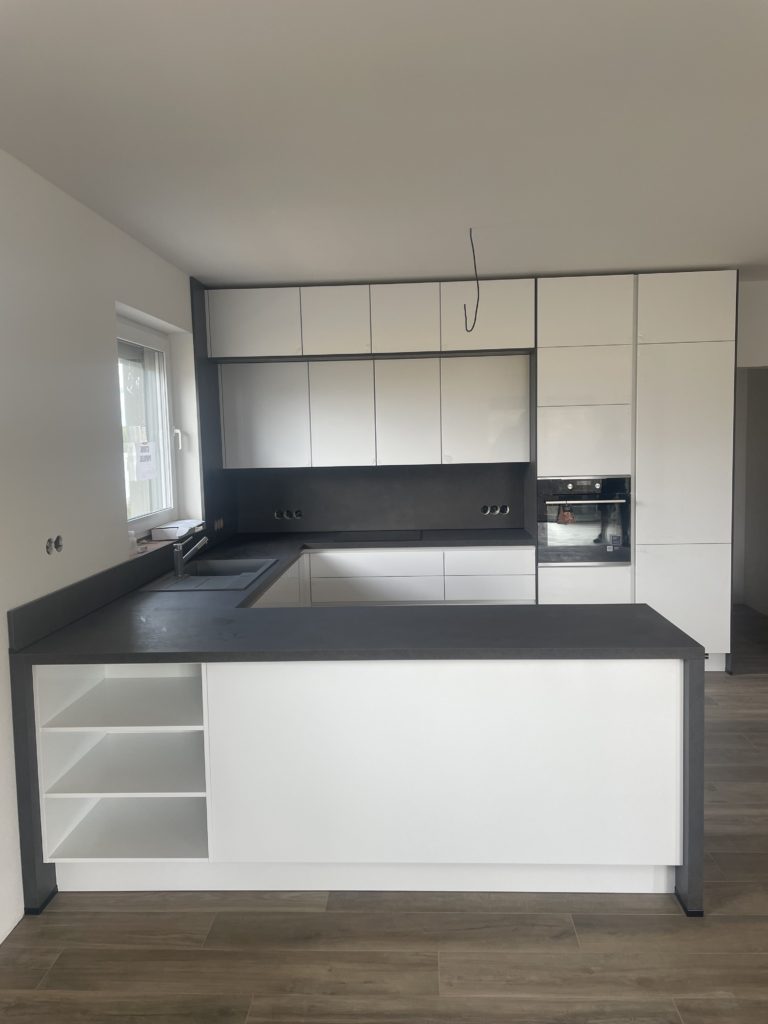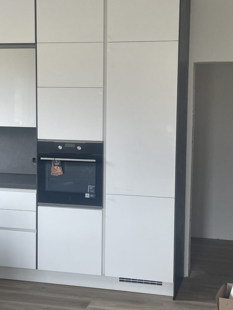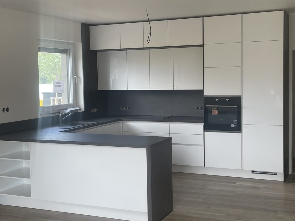 Každá nová kuchyně na míru je pro nás příjemná výzva. Posloucháme vaše příběhy, přání a potřeby a snažíme se vyplnit do posledního puntíku. Jedním z našich klientů byla i mladá a rozrůstající se rodina z Chlumčan, která snila o krásné, moderní a samozřejmě prostorné kuchyni s dostatkem úložného prostoru. Po výběru z mnoha trendových a stylových designů padla volba na minimalistickou kuchyni v bezúchytovém provedení v klasické sněhobílé a oslnivém lesku. Tuto krásnou kuchyňskou linku doplnila matná pracovní deska a obklady v betonové imitaci s názvem Tera Beton. Naprostou samozřejmostí jsou také vestavěné moderní spotřebiče pro snadné a pohodové vaření. Věříme, že se v této prosvětlené a dokonale nadčasové kuchyni bude vařit, smažit i péct úplně samo a kuchyně bude rodině sloužit dlouhá léta!