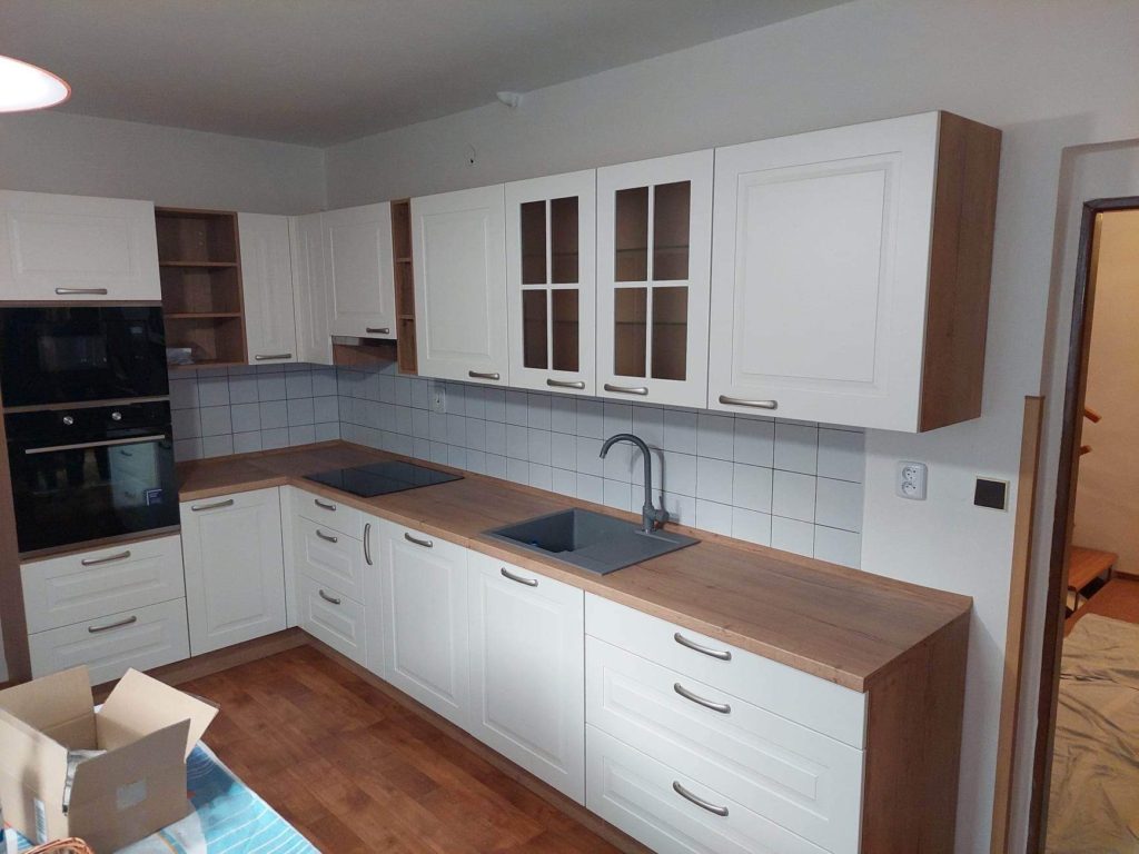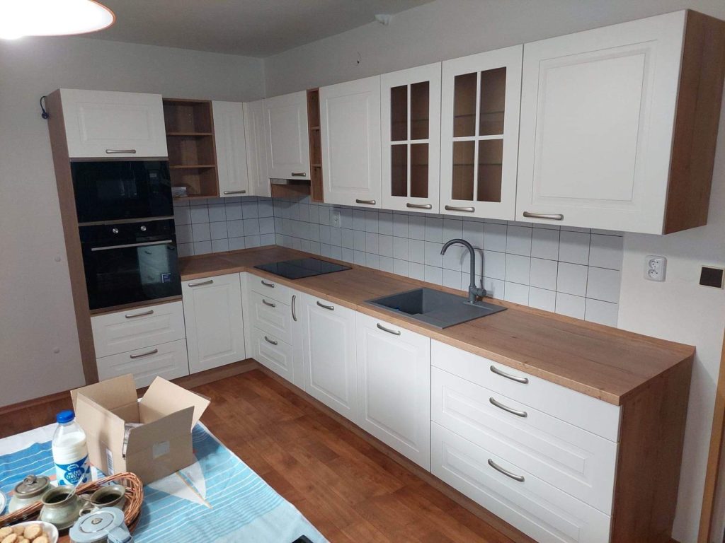 Kuchyně v rustikálním provedení byla navržena s tím, aby dokonale doplnila interiér daného domu. Pro její výrobu byly použity tradiční prvky, které jsou provázány s poctivou a kvalitní prací. Jedná se o provedení bílá matná, vysoce kvalitní kovové úchytky a doplňky, které jsou skvěle sladěny. Kuchyň je vybavena spotřebiči Electrolux, které jsou známé pro svou kvalitu a spolehlivost. Díky jejich technologii má zákazník jistotu, že se o svoji kuchyni bude moci starat dlouhou dobu bez problémů. Kuchyň je vybavena pracovní deskou v dekoru světlého dubu, která je moderní a elegantní. Kuchyň je také vybavena prosklenými dvířky s jemnou sanitací, která dokonale doplňuje celkový vzhled kuchyně.