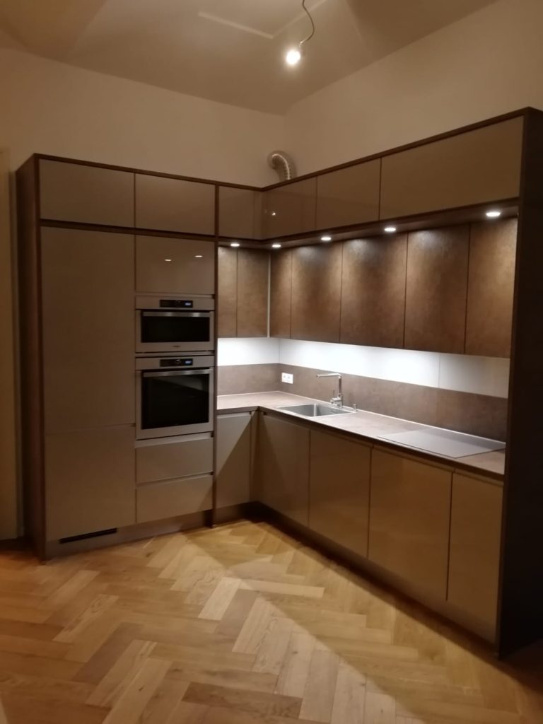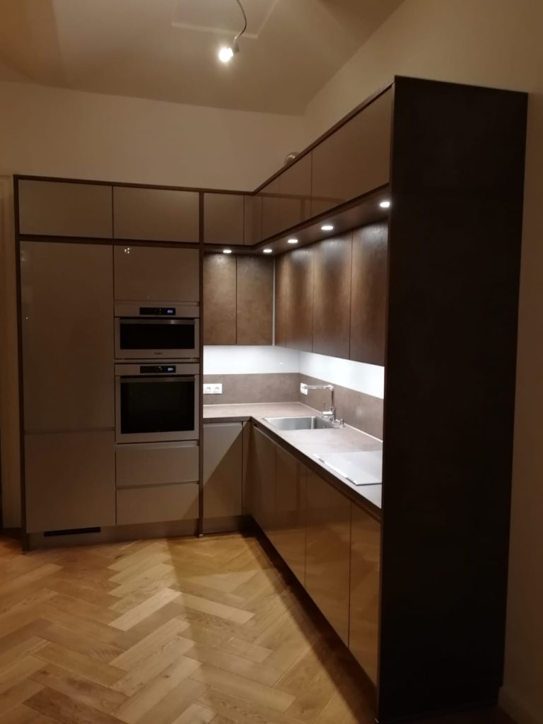 V Praze je blaze, říká se. A my bychom se pod to klidně podepsali. S kuchyní, kterou jsme vyráběli pro smíchovský byt, to totiž ani jinak nejde. Milujeme byty, které mají svoji duši, své neopakovatelné kouzlo. A tento na Smíchově nebyl výjimkou. Krásné vzdušné prostory, retro dřevěné parkety i stará s citem rekonstruovaná okna a dveře, to vše nás doslova okouzlilo. A kdo by čekal, že se do takového interiéru hodí jen rustikální kuchyně, byl by na omylu! S klientem jsme do tohoto výjimečného prostoru umístili moderní designovku v nápadité barevnosti! Pojďme se podívat na to, jak se nám moderní kuchyně na Smíchově povedla!