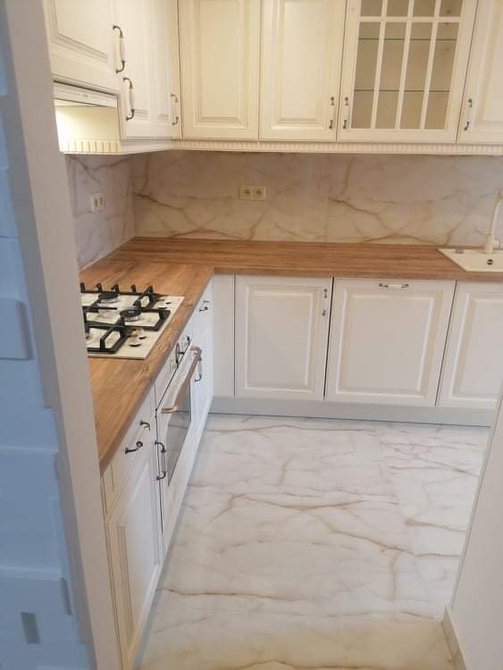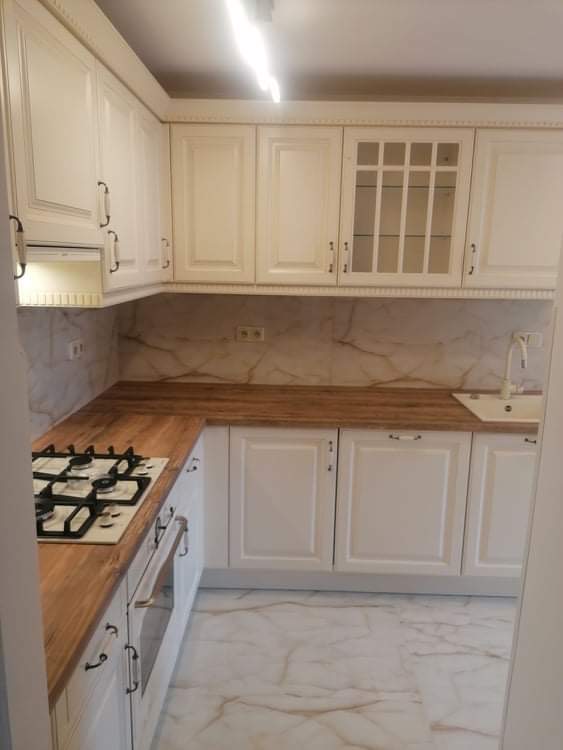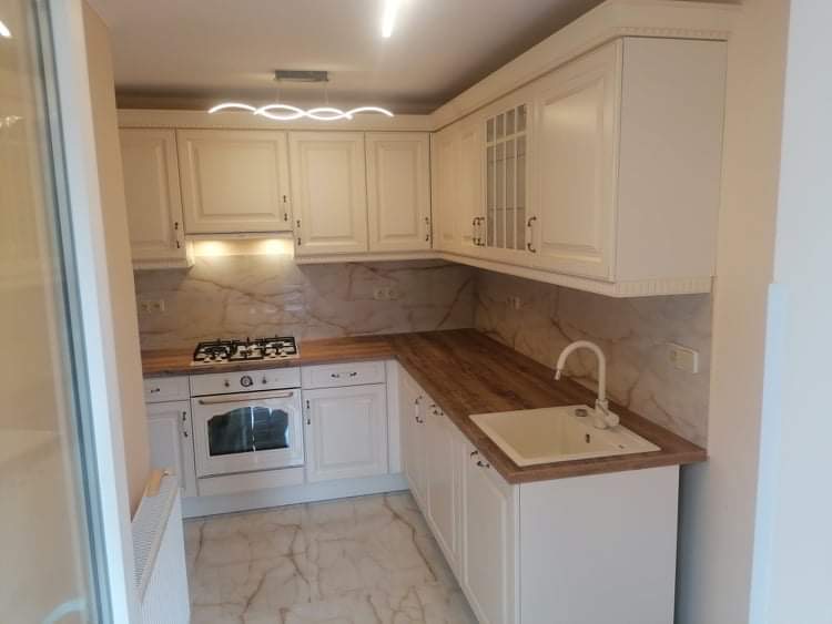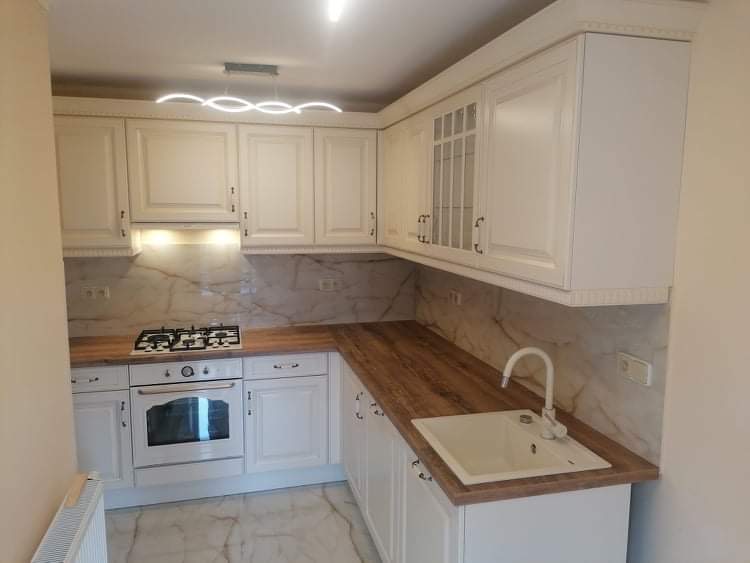 Rustikální kuchyně na míru jsou vždycky sázkou na jistotu, pokud toužíte po útulném a klasicky domáckém interiéru. Rodinu bydlící v bytě v plzeňské ulici Sladkovského minimalistické a čistě moderní kuchyně příliš neoslovovaly. Svou vysněnou kuchyňskou linku proto našli mezi rustikálními kuchyněmi. Konečná volba padla na jednu z našich nejprodávanějších modelů v dekoru Magnolie, kterou se tito klienti rozhodli doplnit prostornou pracovní deskou v příjemném a teplém odstínu dřeva. Zajímavým prvkem, který celek velice atraktivně oživuje a dodává kuchyni aktuální vzhled, je bílý mramorový obklad na linkou. Výsledkem je opravdu krásná, decentní a vlídně působící domácí kuchyně, co říkáte?