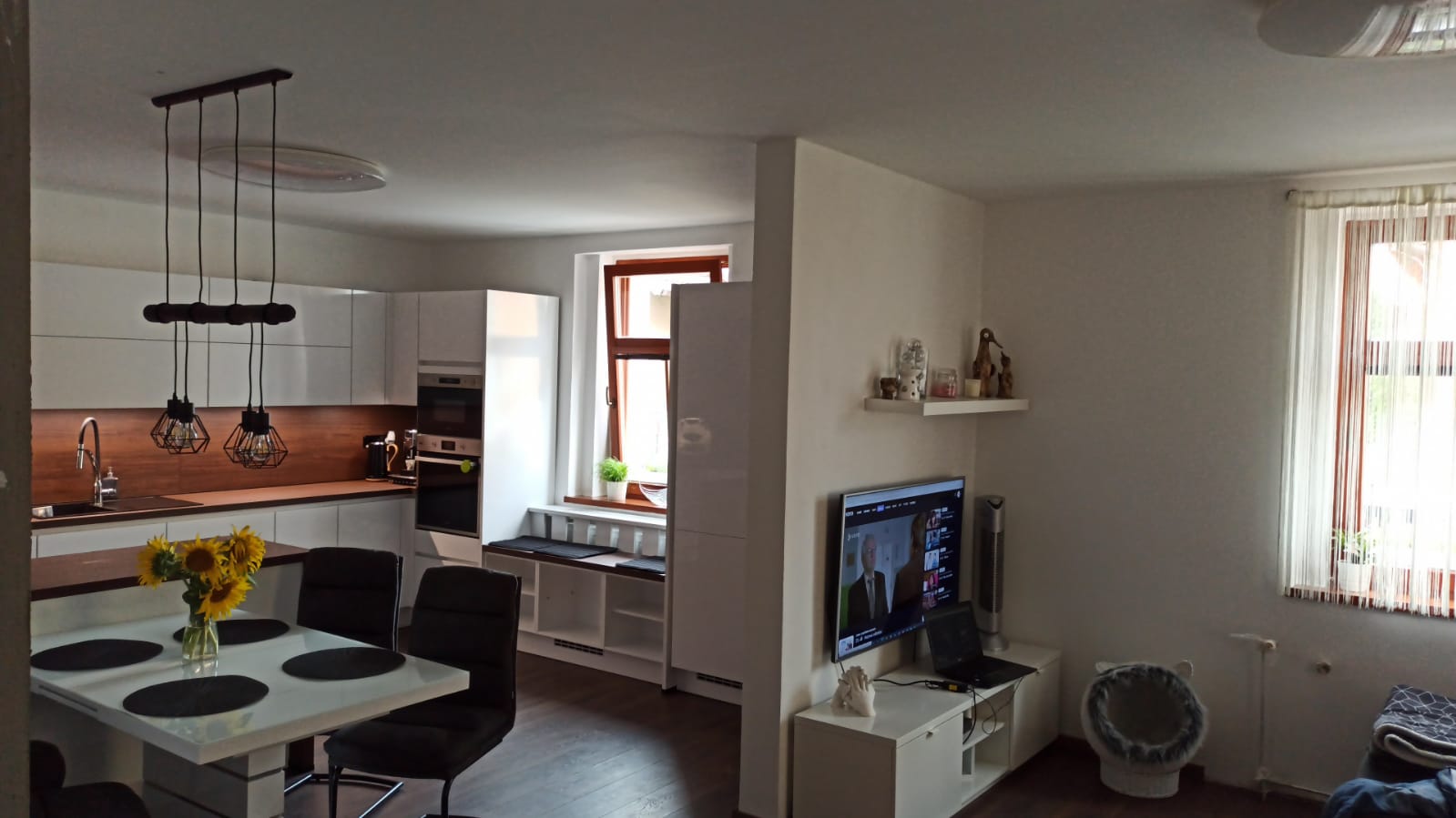 Jedním s posledních přání, které jsme měli možnost splnit, byla rekonstrukce kuchyně pro malou rodinu z Tlustic. Ta si pro svůj stylový moderní domov vysnila prostornou a prakticky řešenou bílou kuchyň v lesku. Konečná volba padla na minimalistickou bezúchytovou linku s množstvím úložného prostoru. Vysoce moderní lesklé bílé provedení jsme oživili a trochu zútulnili prostornou pracovní deskou v dekoru imitace dřeva a ořechovém odstínu. Výsledkem je stylově nadčasová kuchyň, která bude jistě dobře sloužit a dělat radost dlouhá léta. Před realizací jsme vytvořili také 3D návrh, který si také můžete prohlédnout ve fotogalerii.