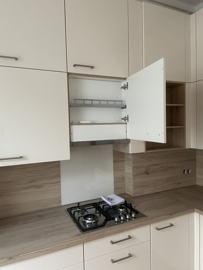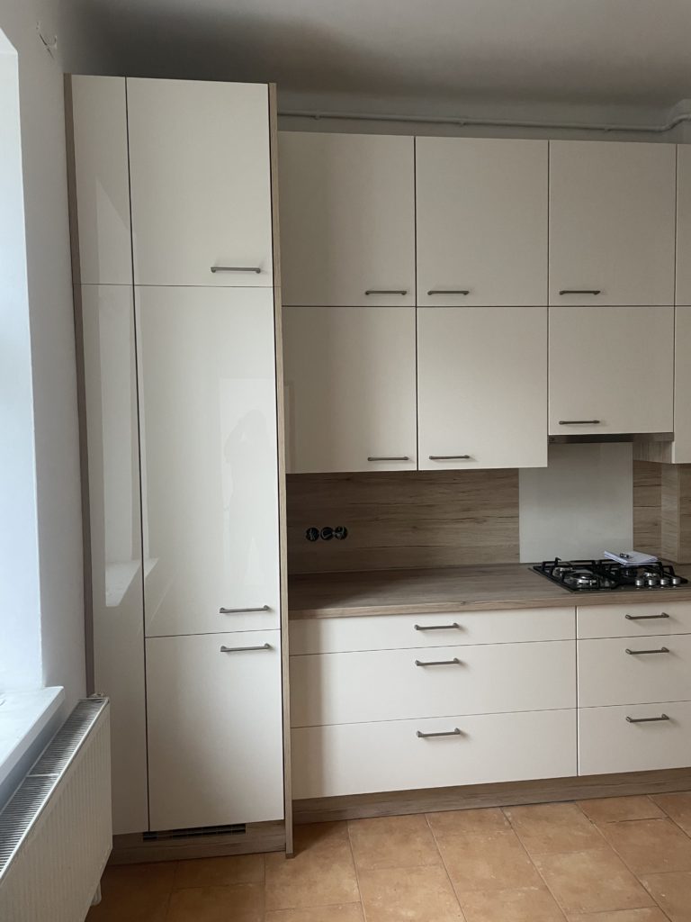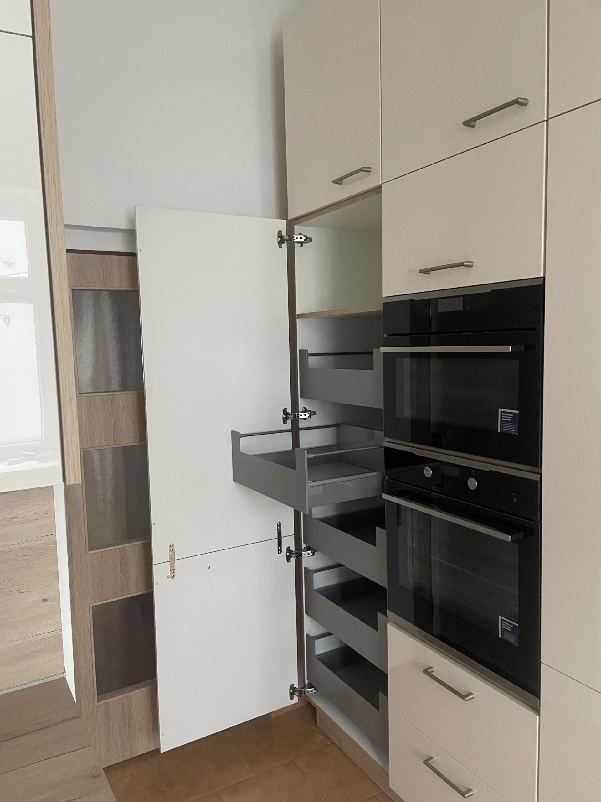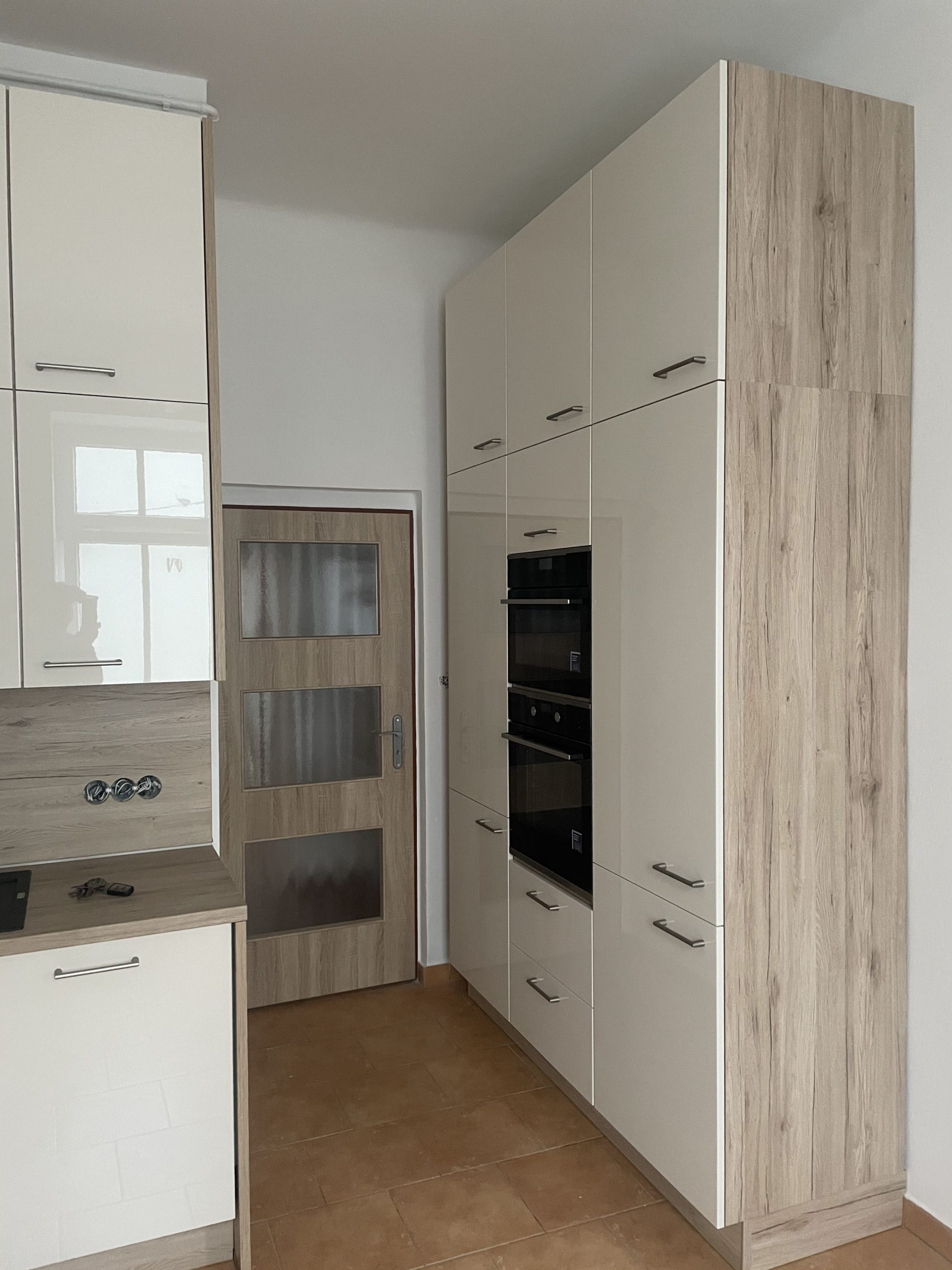 Tak znělo zadání rekonstrukce kuchyňské linky pro našeho klienta v menším bytě v Kollárově ulici v Plzni. Jak můžete vidět ve fotogalerii, řešením se staly netradiční dvě řady skříněk nad sebou, které sahají až do stropu, a také vysoká skříň na potraviny nahrazující špajz. Co se týče vzhledu, padla do oka klientovi jemná kombinace krémového odstínu a světlého dřeva, která se dá jistě považovat za nadčasovou a stylově velmi univerzální. Prakticky i designově? Pro nás rozhodně žádný problém!